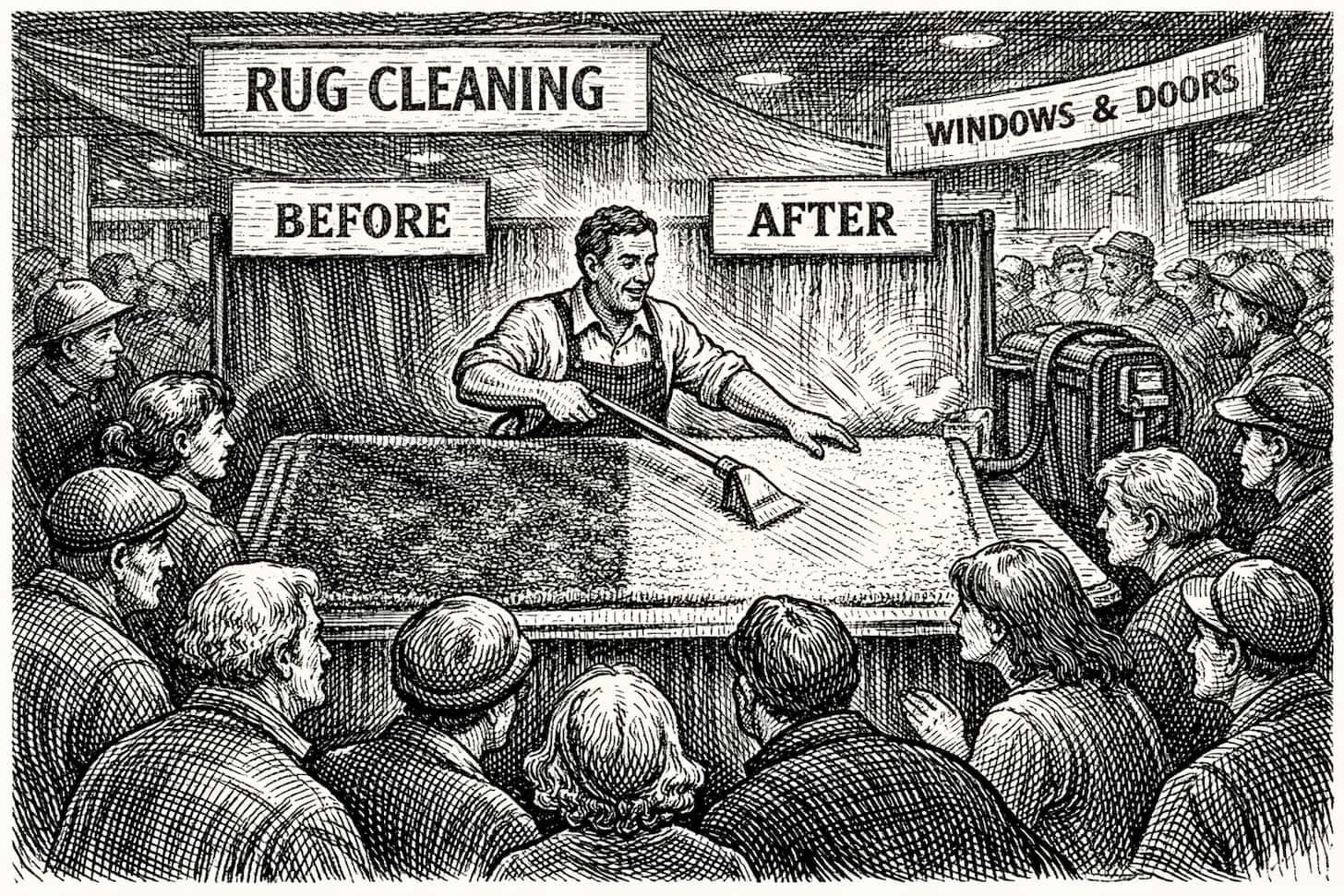 The results? INCREDIBLE! Over 400 rugs cleaned in one weekend, with huge crowds of awe-struck homeowners watching the entire time! (Along with hundreds of grateful clean rug owners!) Why did this promotion work? 🤔